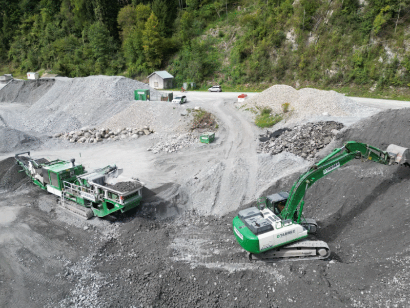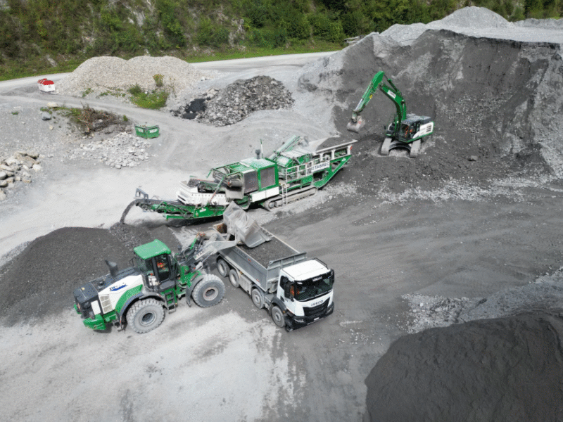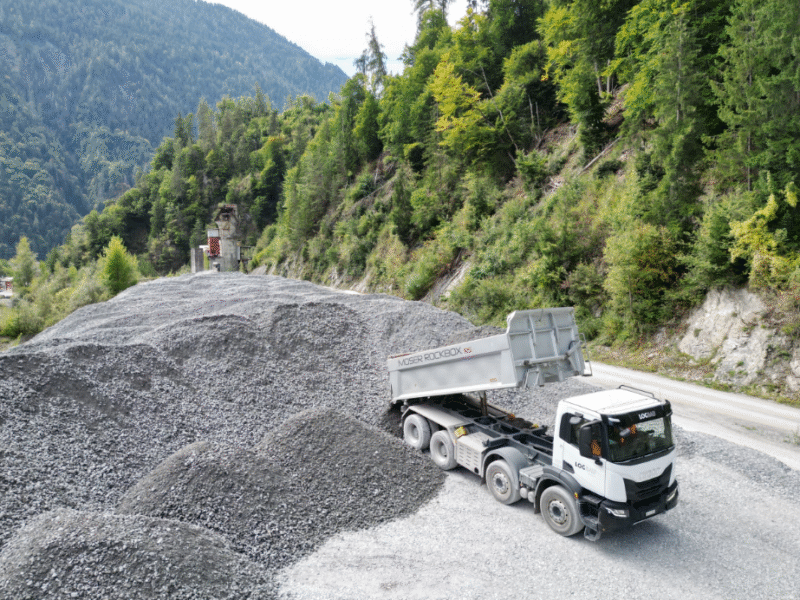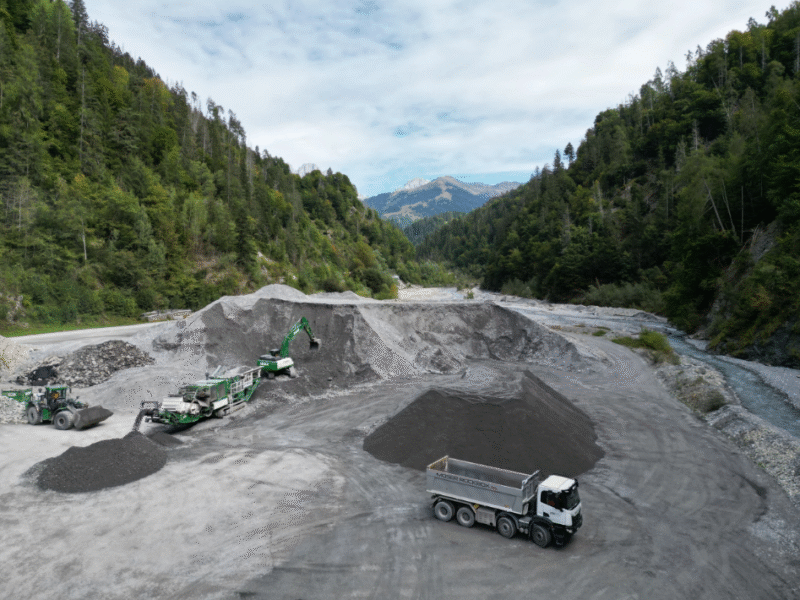 Materialaufbereitung von Koffermaterial im Kieswerk Schrau in Schiers.