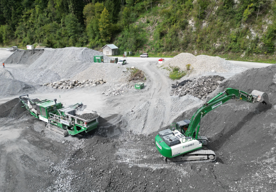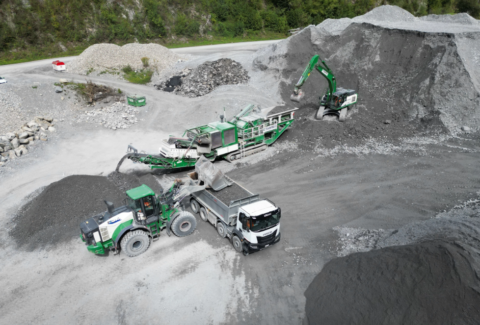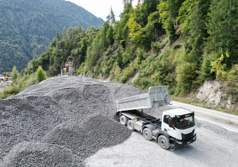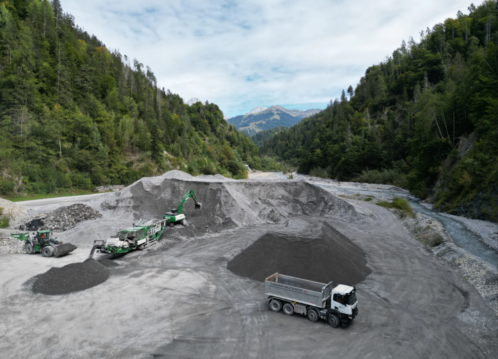 Materialaufbereitung von Koffermaterial im Kieswerk Schrau in Schiers.